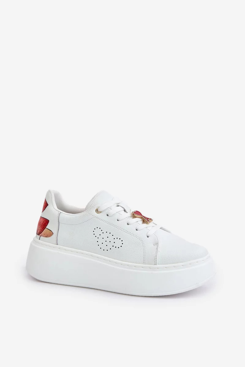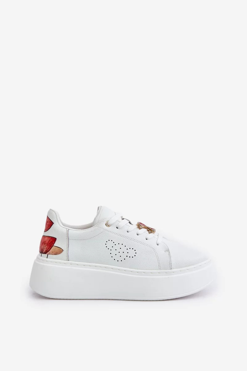Osazené na platformě, dodávají moderní vzhled a jemnou výšku. Model má šněrování s ozdobnou sponou a na zadní straně bot je zdobí výjimečné tulipány, které jim dodávají originalitu a ženský charakter. Tyto tenisky jsou skvělou volbou pro ženy, které chtějí vyniknout jedinečným stylem každý den. Při výběru velikosti se prosím řiďte tabulkou velikostí.