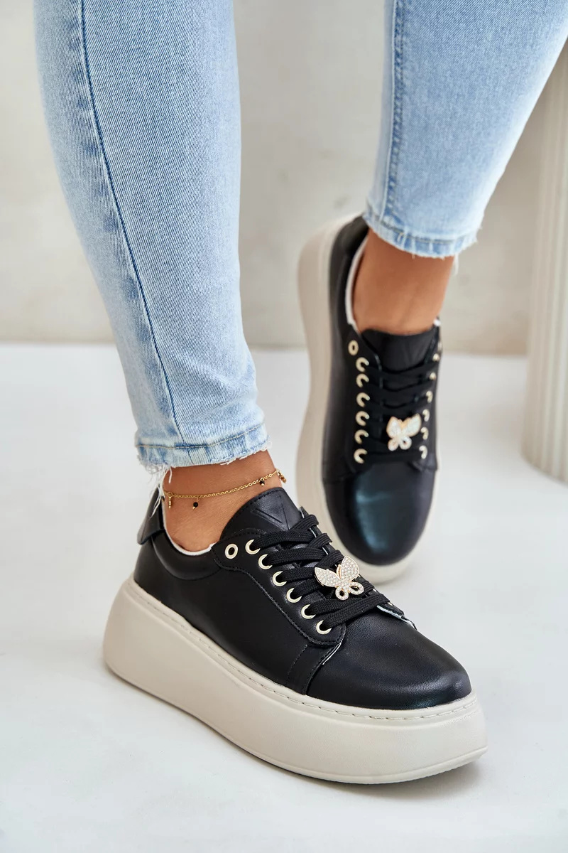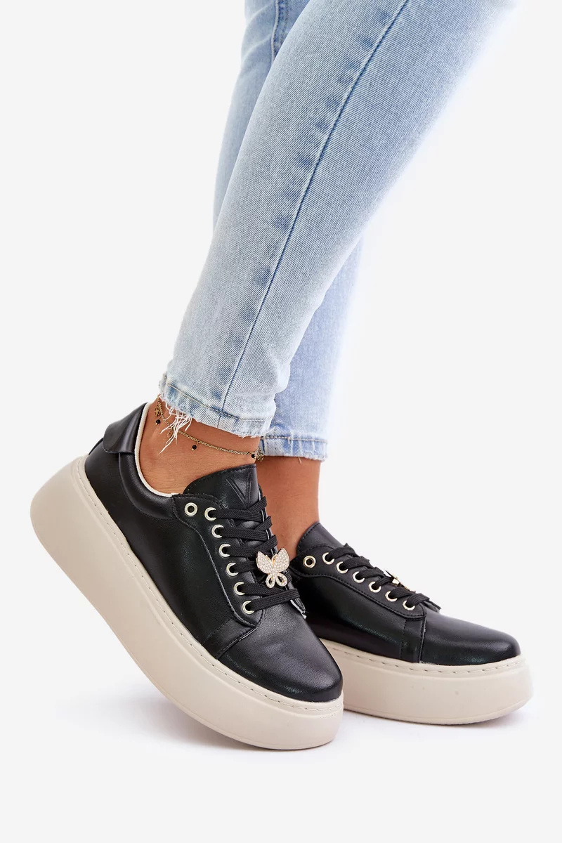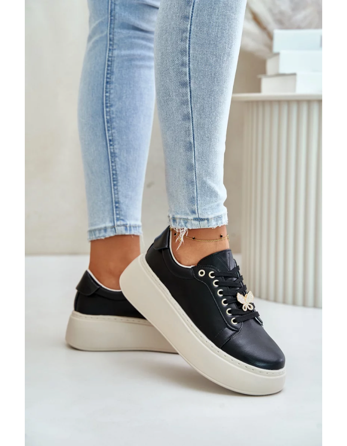 Model se šněrováním, ozdobený broží ve tvaru roztomilého motýla, což dodává jemný a výjimečný akcent. Tyto tenisky jsou ideální volbou pro ženy, které oceňují kombinaci pohodlí, kvality a originálního designu v každodenních outfitech. Při výběru velikosti se prosím řiďte tabulkou velikostí.