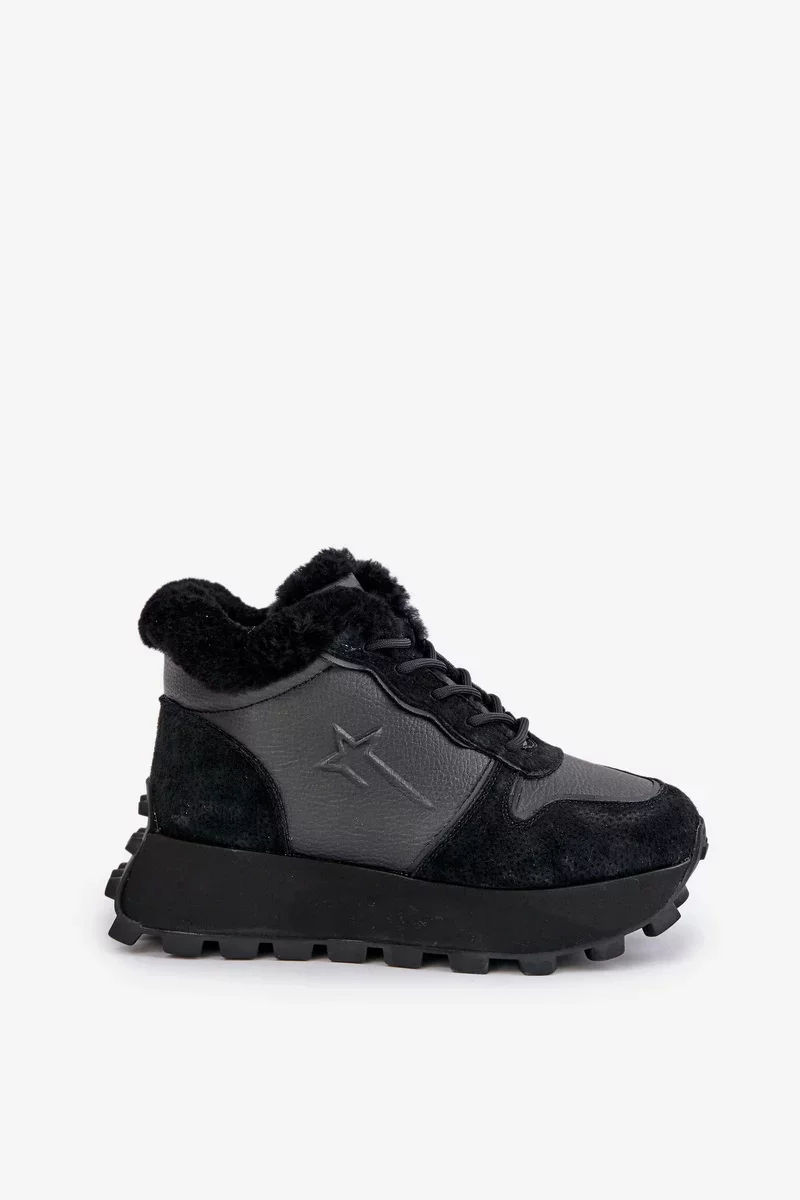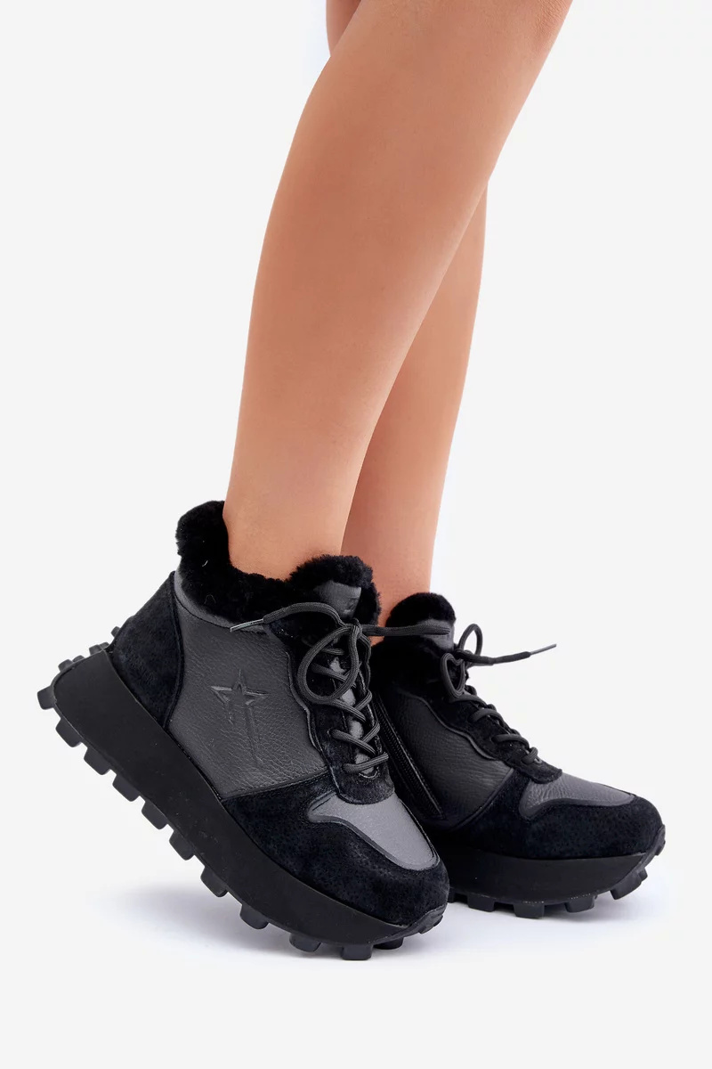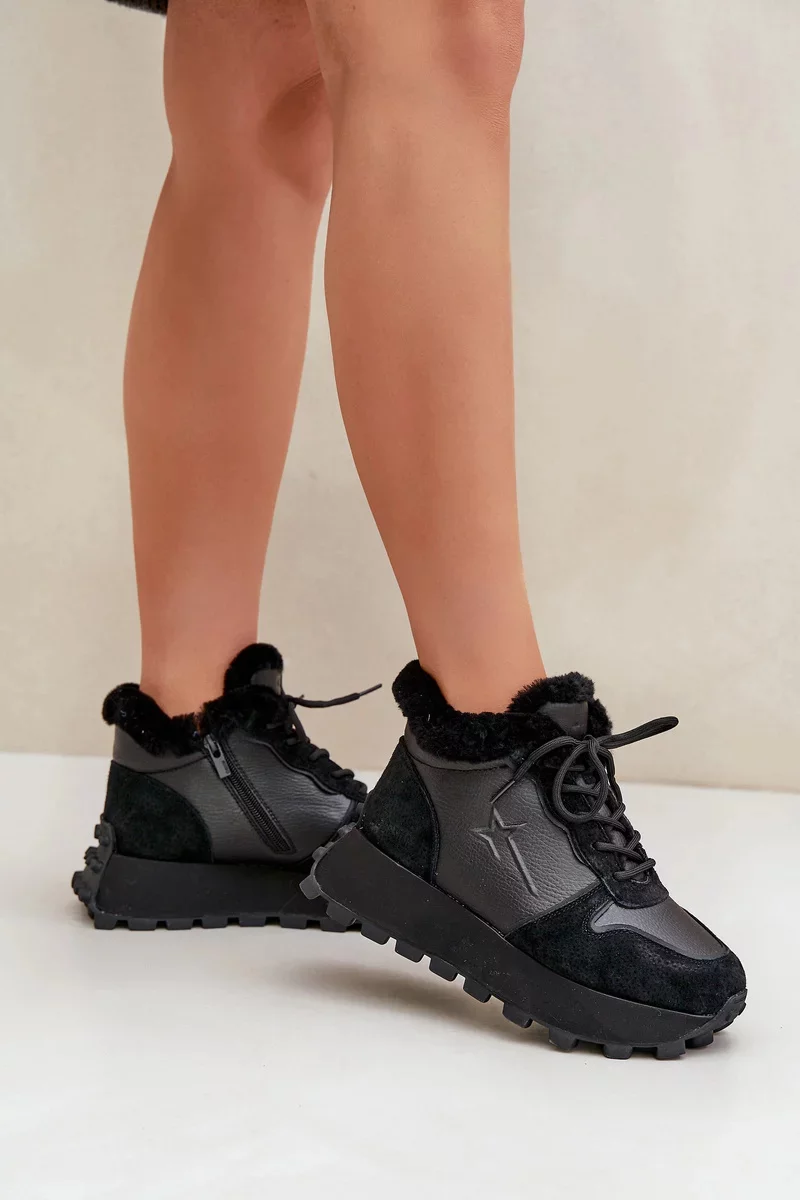 Dámské tenisky vyrobené z vysoce kvalitní přírodní kůže jsou skvělou volbou pro chladnější dny. Model umístěný na módní platformě poskytuje nejen stylový vzhled, ale také pohodlí při používání. Zateplené měkkým kožíškem, zaručují teplo během zimních procházek. Zapínání na zip a šněrování, což umožňuje ideální přizpůsobení noze. Teplé, pohodlné a praktické – skvělé pro každodenní stylizace. Při výběru velikosti se prosím řiďte tabulkou velikostí.