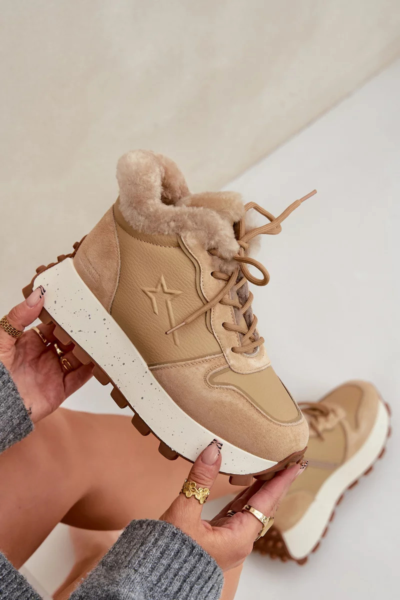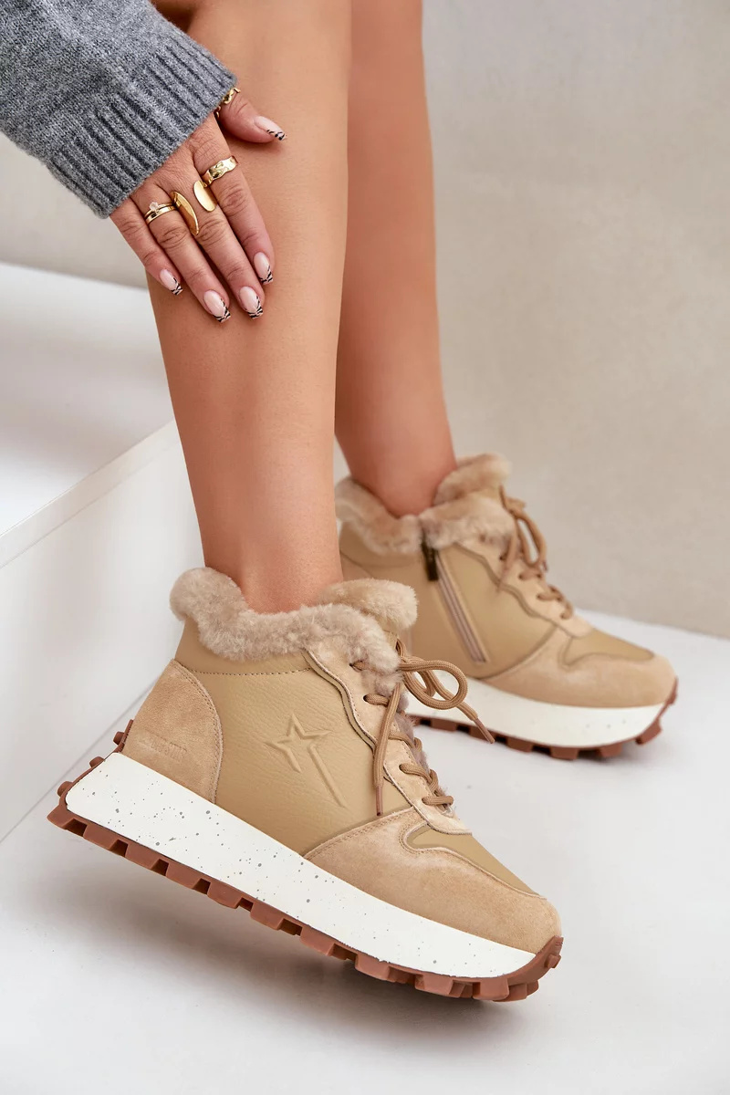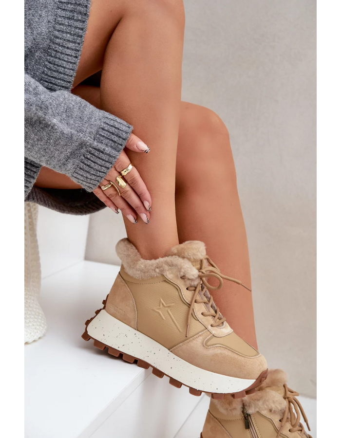 Dámské tenisky vyrobené z vysoce kvalitní přírodní kůže jsou skvělou volbou pro chladnější dny. Model umístěný na módní platformě poskytuje nejen stylový vzhled, ale také pohodlí při používání. Zateplené měkkým kožíškem, zaručují teplo během zimních procházek. Zapínání na zip a šněrování, což umožňuje ideální přizpůsobení noze. Teplé, pohodlné a praktické – skvělé pro každodenní stylizace. Při výběru velikosti se prosím řiďte tabulkou velikostí.