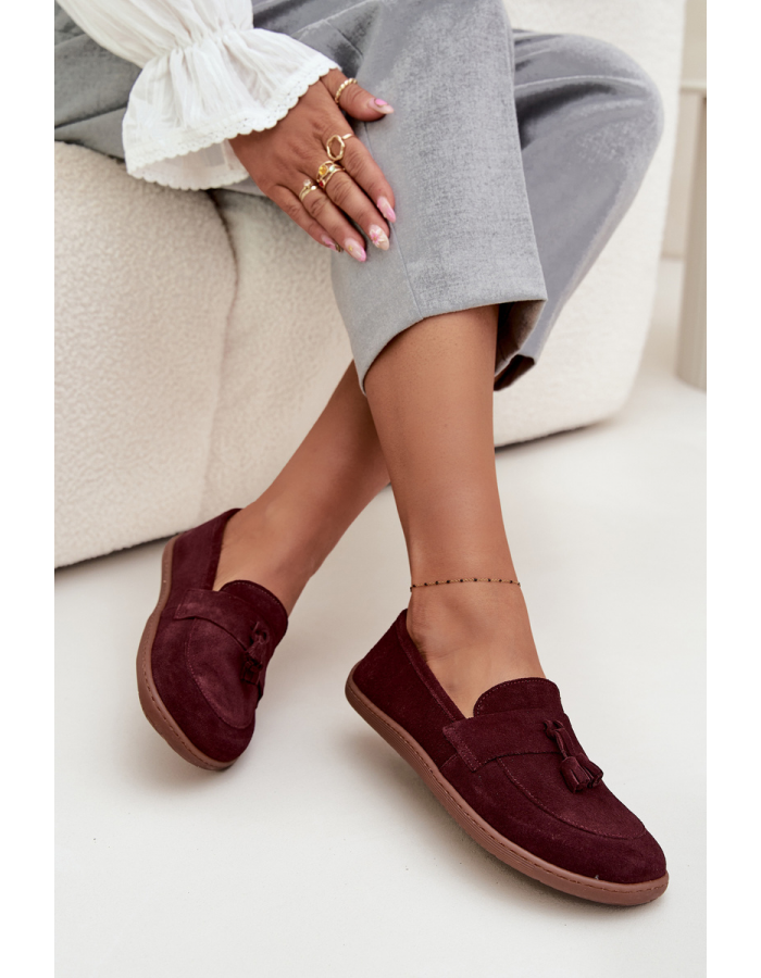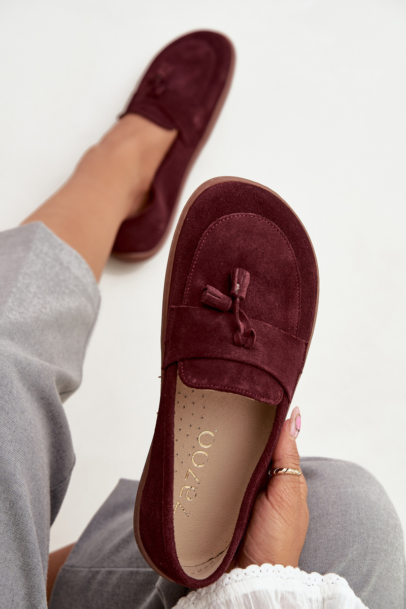 Kožené semišové mokasíny typu barefoot Zazoo jsou navržené pro přirozený pohyb chodidla a pohodlné nošení během celého dne. Semišový svršek působí elegantně a je příjemný na noze, zároveň se boty dobře přizpůsobí a díky barefoot provedení podporují přirozenější došlap. Bordó barva dodá outfitu vkusný, výraznější akcent a mokasíny se hodí do města i na volný čas k džínům, kalhotám i šatům.