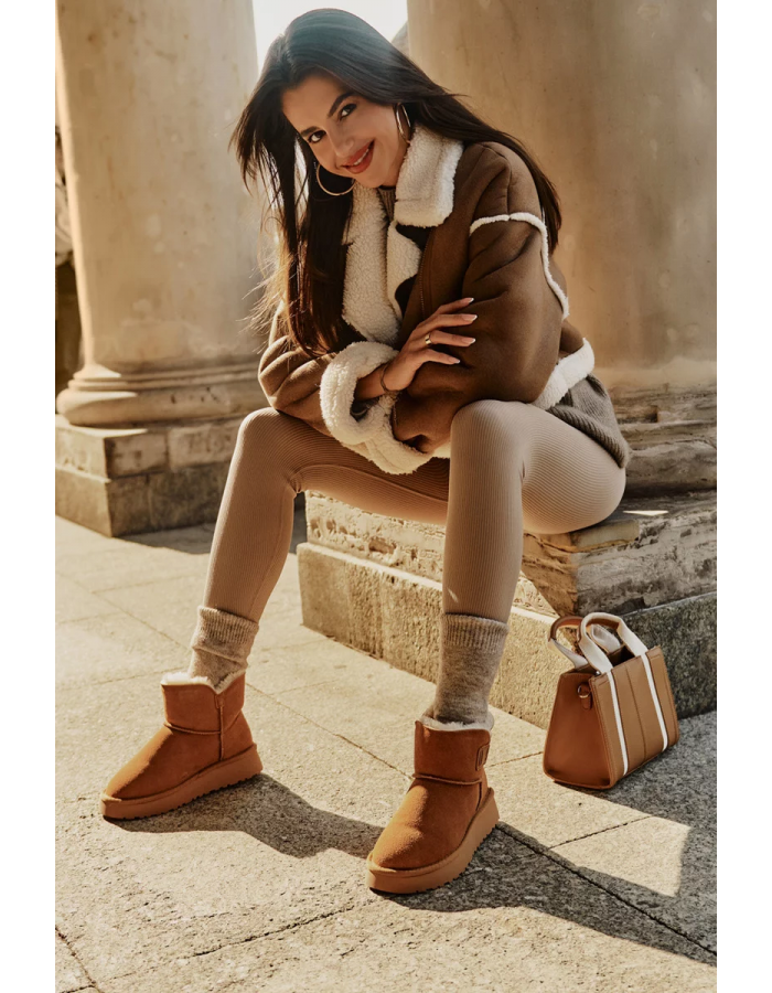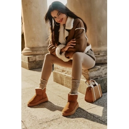 Vyrobené z přírodní semiše, vypadají stylově a dokonale chrání před chladem. Vnitřek je zateplený měkkým kožíškem, který zajišťuje teplo a pohodlí. Podešev z gumového materiálu zaručuje dobrou přilnavost na kluzkých površích. Dalším ozdobným prvkem je suchý zip na svršku, který dodává originální charakter. Při výběru velikosti se prosím řiďte tabulkou velikostí.