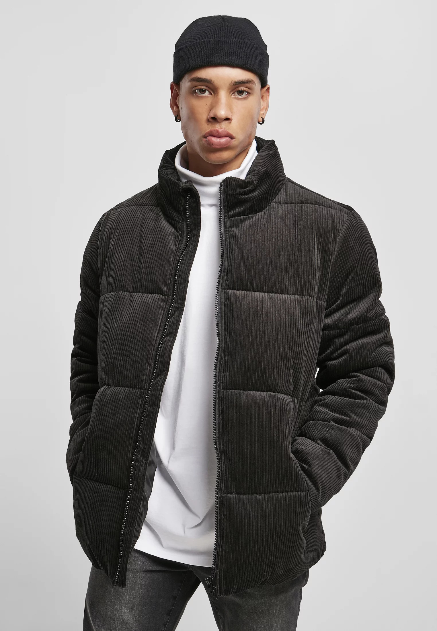 Trendy nafouknutý design se snoubí s manšestrovou bundou: výsledkem je bokovka a elegantní must have pro tuto sezónu. Old school gangsta manšestrová tkanina udává tempo této neobvyklé péřové bundy. Je definována pevnou výplní a rozdělena pevnými příčnými švy. Retro design navíc zahrnuje vysoký stojáček, dvě boční kapsy a praktickou kapsu na vnitřní straně. Bunda Urban Classics má regular střih a je vybavena předním zipem.