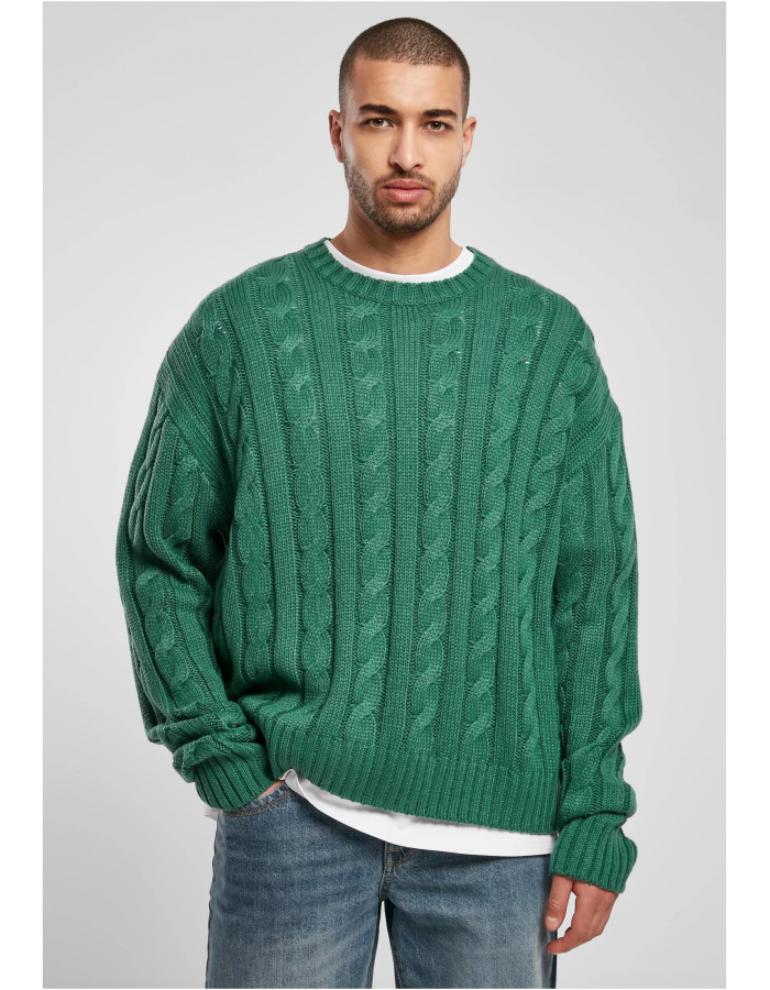 Tento elegantní, jednobarevný pánský pletený svetr má na přední straně a na rukávech velký kabelový vzor. Vzhled dotvářejí široké žebrované manžety na rukávech a lemu, stejně jako žebrovaný výstřih. Díky svému oversize / hranatému střihu s širokými spadajícími rameny je svetr pramenem pohody. Je vyrobena z hladké akrylové tkaniny.