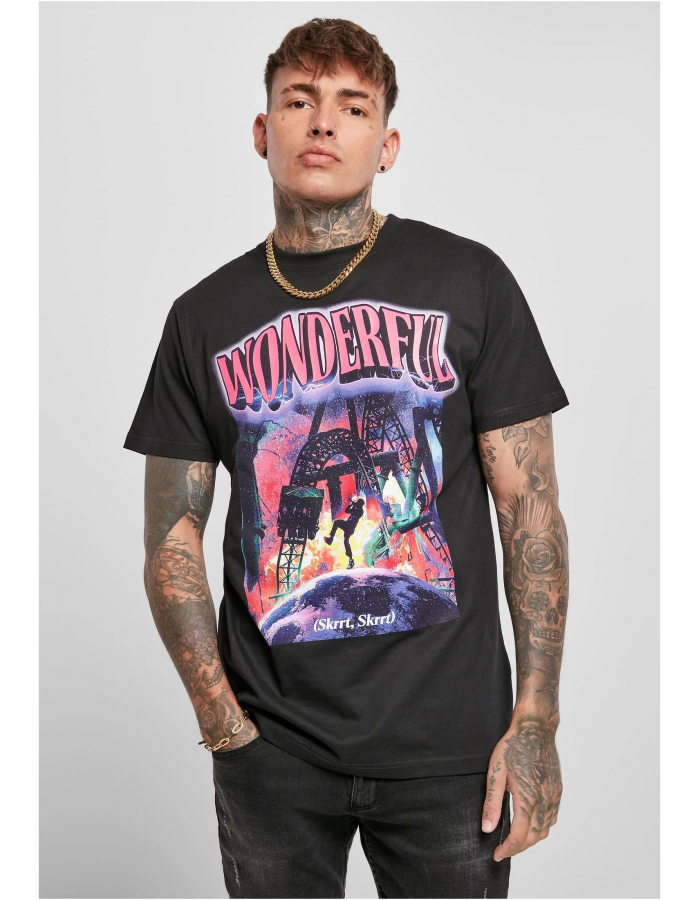 Chcete ležérní tričko s barevným potiskem? Pak může být tento kousek s dominantním nápisem Wonderful a motivem horské dráhy přesně tím, co váš šatník potřebuje. K dispozici v černé nebo bílé barvě, je tou správnou volbou pro váš oblíbený outfit.