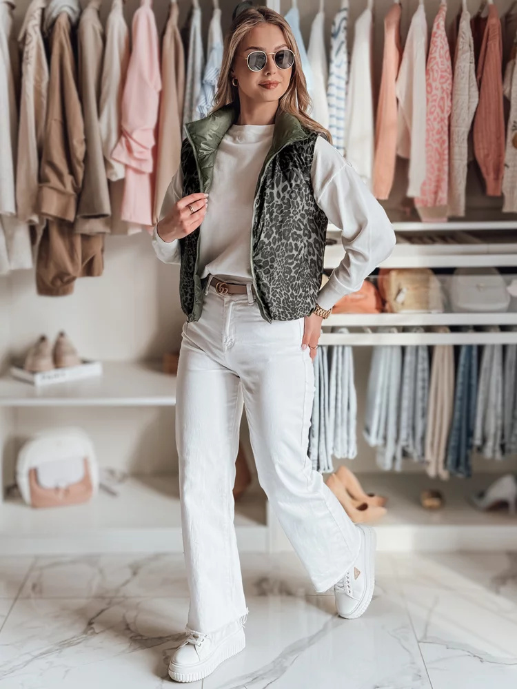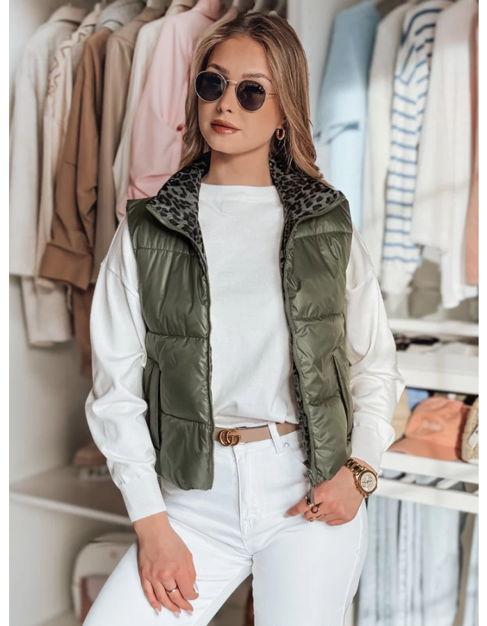 Kamizelka przejściowa damska o dwustronnym designie, łącząca klasykę z modnym akcentem. Ozdobne kieszenie wewnętrzne i zewnętrzne dodają uroku i funkcjonalności, a regulowany dół pozwala na idealne dopasowanie. Zapinana na zamek, bez kaptura, z lekkim ociepleniem, które zapewnia komfort w chłodniejsze dni. Model idealny na okres przejściowy, pasuje do wielu stylizacji.