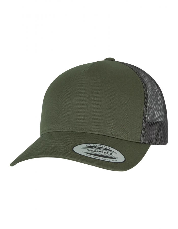 Kšiltovka v olivově zelené barvě s minimalistickým a moderním designem. Přední část kšiltovky je plná, zatímco zadní část je síťovaná, což zajišťuje lepší prodyšnost. Kšiltovka je typu „snapback“, což znamená, že má nastavitelný pásek na zadní straně pro individuální přizpůsobení velikosti. Klasický, mírně zakřivený kšilt poskytuje ochranu před sluncem. Jednoduchý a univerzální styl je vhodný pro každodenní nošení, ať už na sport nebo volný čas.