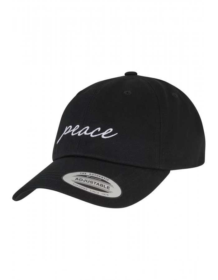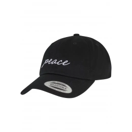 Tato černá kšiltovka je stylovým a zároveň jednoduchým doplňkem, který snadno zapadne do jakéhokoli outfitu. Na přední straně má vyšité slovo "peace" v elegantním bílém písmu, které dodává klobouku moderní a minimalistický vzhled. Kšiltovka je vybavena nastavitelným popruhem, což zajišťuje pohodlné nošení pro každého. Je ideální pro každodenní nošení a pro každého, kdo chce šířit pozitivní poselství a udržet si pohodlný a ležérní styl.