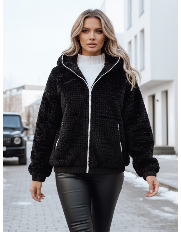 Miękka i przyjemna w dotyku kurtka futrzana sprawdzi się w codziennych stylizacjach oraz w chłodniejsze dni przejściowe. Model wyposażony w praktyczny kaptur oraz kieszenie zapinane na zamek zwiększa komfort użytkowania. Dzięki ściągaczom przy rękawach i na dole fason zyskuje sportowy charakter oraz lepsze dopasowanie do sylwetki.