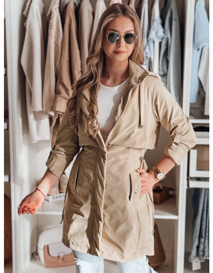 Damska kurtka parka łącząca klasykę ze stylem. Wygodny, odpinany kaptur oraz regulacja w pasie i rękawach pozwalają dopasować fason do sylwetki. Zapinana na zamek i napy, z ozdobnymi kieszeniami – dwiema zewnętrznymi i jedną wewnętrzną. Idealna na wiosenne stylizacje, łącząc komfort i elegancję.