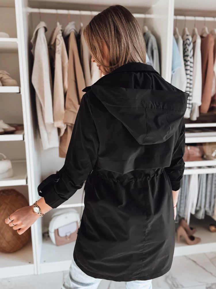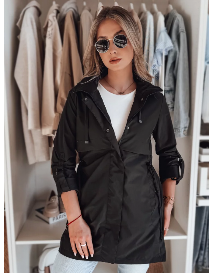 Damska kurtka przejściowa, która doskonale łączy styl i funkcjonalność. Wygodne zapięcie na zamek i napy zapewnia ochronę przed chłodem, a regulacja w pasie podkreśla sylwetkę. Odpinany kaptur i ozdobne kieszenie dodają jej uniwersalnego charakteru, idealnego na codzienne stylizacje w okresie przejściowym.