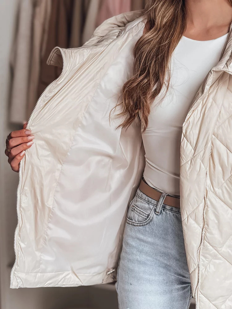 Pikowana kurtka damska oversize łączy wygodę z modnym wyglądem. Zapinana na zamek błyskawiczny, posiada nieodpinany kaptur oraz dwie ozdobne kieszenie na suwak. Ściągacze przy rękawach zapewniają komfort noszenia. Idealna na przejściowe sezony, zapewnia ciepło i swobodę ruchów w każdej stylizacji.