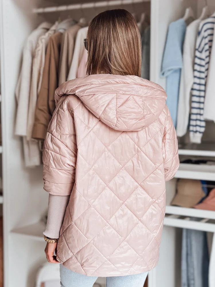Pikowana kurtka damska oversize łączy wygodę z modnym wyglądem. Zapinana na zamek błyskawiczny, posiada nieodpinany kaptur oraz dwie ozdobne kieszenie na suwak. Ściągacze przy rękawach zapewniają komfort noszenia. Idealna na przejściowe sezony, zapewnia ciepło i swobodę ruchów w każdej stylizacji.