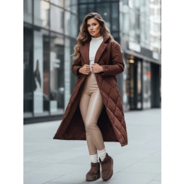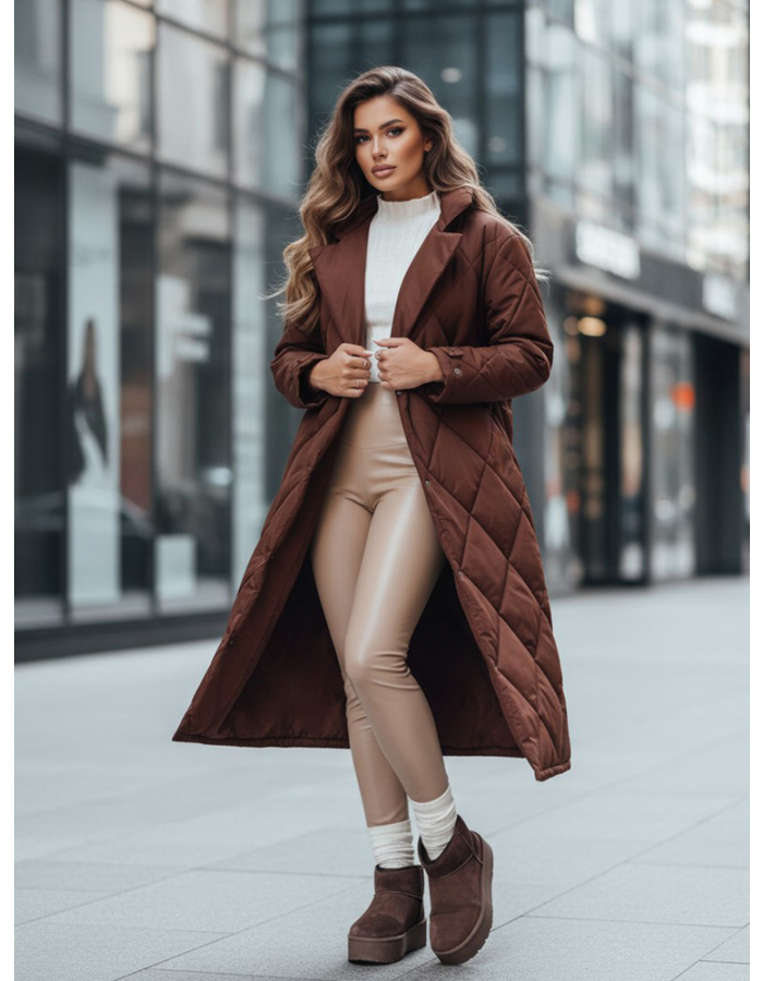 Pikowana kurtka zimowa o długości midi, zapinana na napy, z wysokim kołnierzem i ocieplanym wnętrzem. Stylowy krój w romby nadaje jej modny, kobiecy wygląd, a klasyczny fason świetnie sprawdza się zarówno w miejskich, jak i codziennych stylizacjach. Kurtka zimowa idealna na chłodne dni – gwarantuje komfort, ciepło i modny wygląd przez cały sezon.