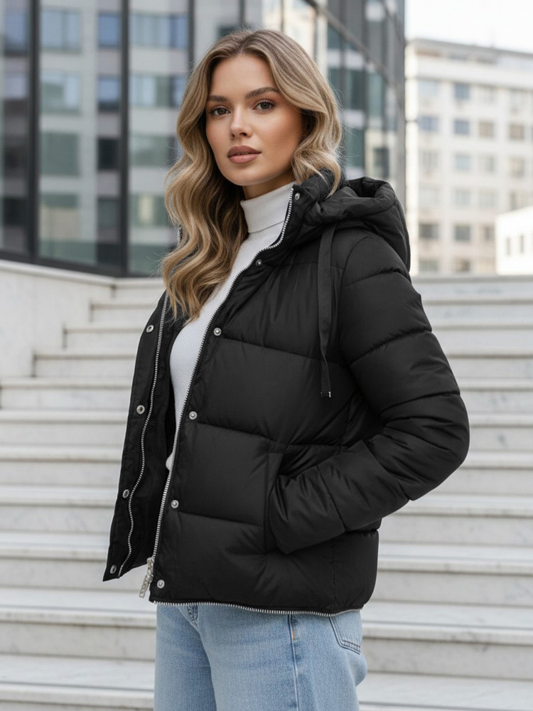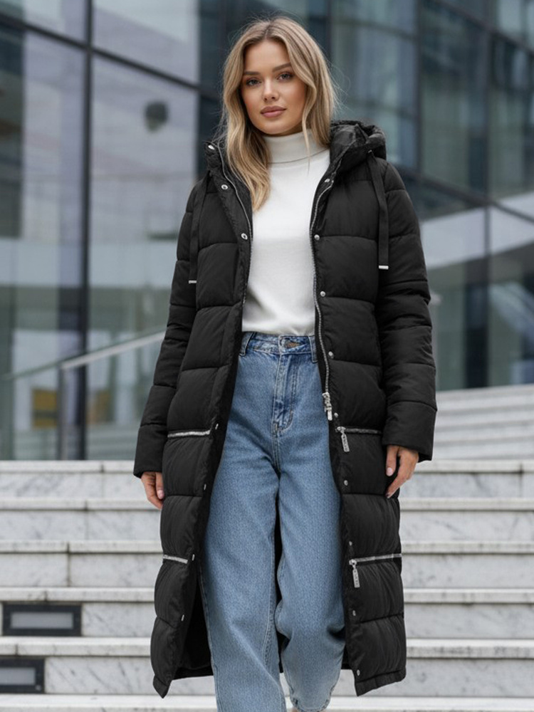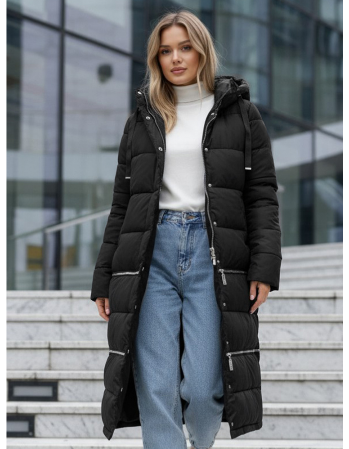 Kurtka sprawdza się w codziennych zimowych stylizacjach, a możliwość wyboru długości pozwala dopasować ją zarówno do dynamicznych, miejskich zestawów, jak i długich spacerów w chłodne dni. Krótsza wersja dobrze komponuje się z jeansami i botkami, natomiast najdłuższy wariant zapewnia maksymalną ochronę przed zimnem. Model łączy funkcjonalność, wygodę i nowoczesny wygląd, wpisując się w potrzeby sezonu jesień–zima.