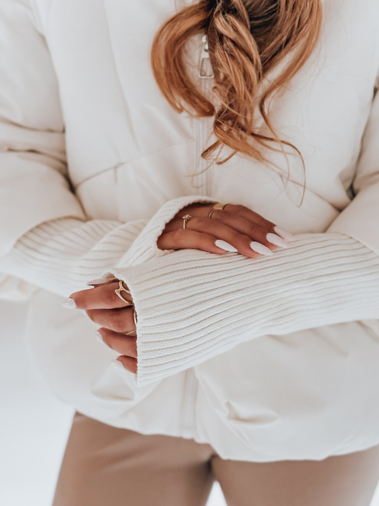 Kurtka posiada długie ściągacze przy rękawach, które poprawiają komfort noszenia i chronią przed chłodem.