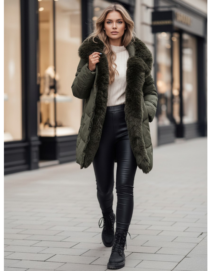 Ta elegancka kurtka to połączenie modnego stylu i funkcjonalności, idealna na chłodniejsze dni. Wysokiej jakości wypełnienie gwarantuje komfort termiczny, a starannie dopracowane detale dodają jej wyjątkowego charakteru. Doskonała na co dzień, jak i na wyjątkowe okazje, zapewniając jednocześnie ciepło i modny wygląd.