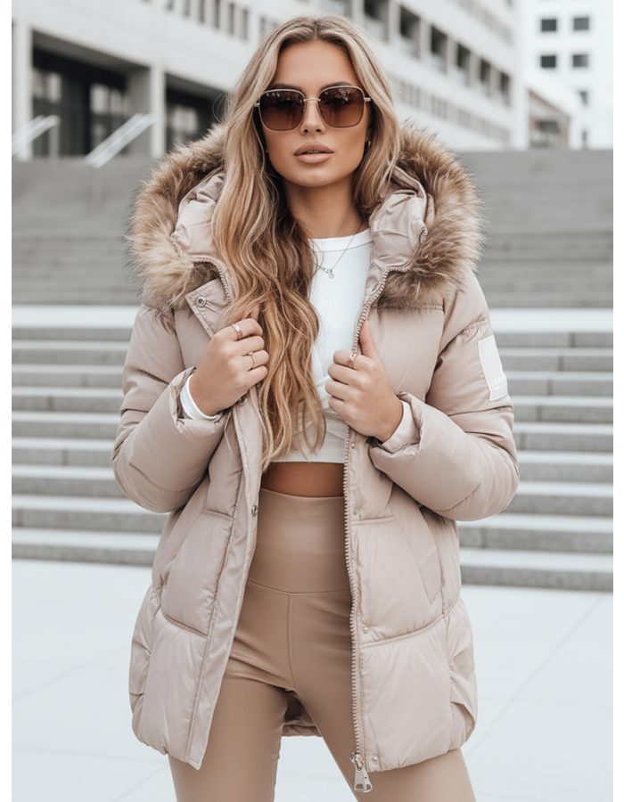 Kurtka damska zimowa pikowana z kapturem TY5506 beżowa