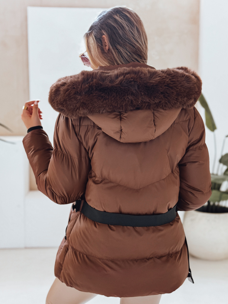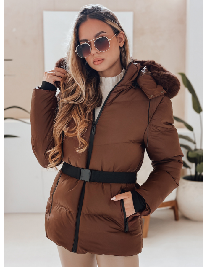 Damska kurtka zimowa z paskiem podkreślającym talię i dużym, miękkim kapturem obszytym sztucznym futerkiem. Zapewnia komfort termiczny i świetnie sprawdza się w chłodne dni. Modne pikowanie i funkcjonalne kieszenie tworzą nowoczesny, kobiecy look na zimę.