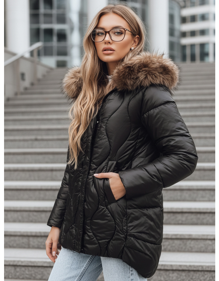 Kurtka damska zimowa pikowana z futerkiem TY5501 czarna