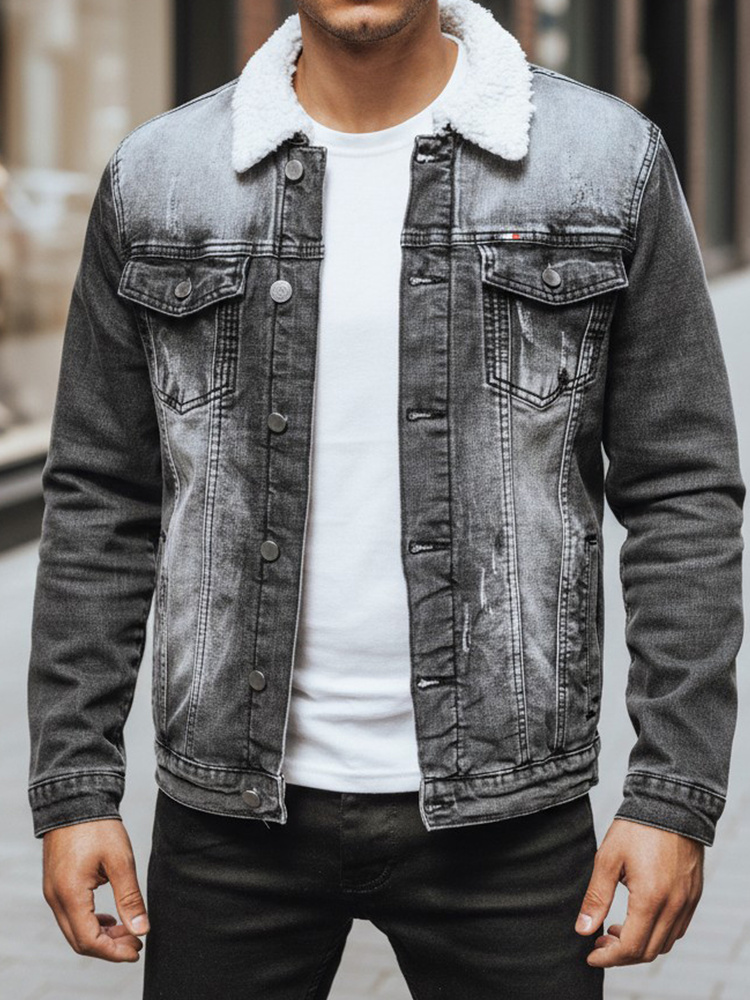 Kurtka męska jeansowa ocieplana z kożuchem TX4230z czarna