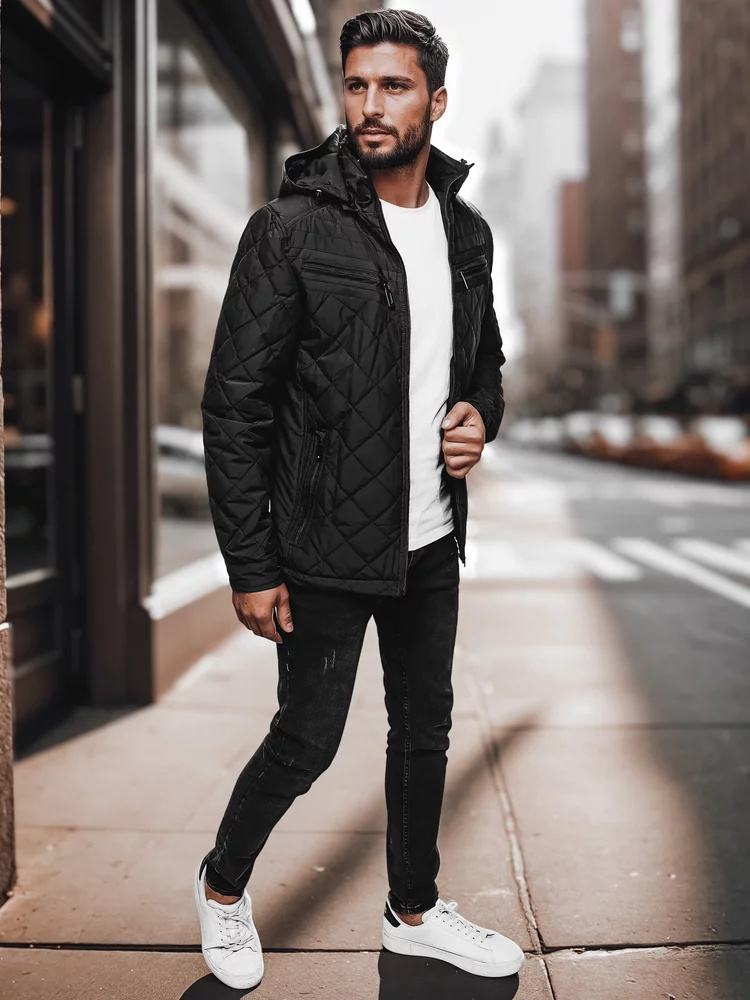 Pikowana kurtka męska to doskonałe rozwiązanie na chłodniejsze dni. Praktyczny kaptur chroni przed wiatrem, a liczne kieszenie zapewniają miejsce na niezbędne drobiazgi. Stylowy design w połączeniu z funkcjonalnością sprawia, że idealnie sprawdzi się zarówno na co dzień, jak i w bardziej formalnych stylizacjach.