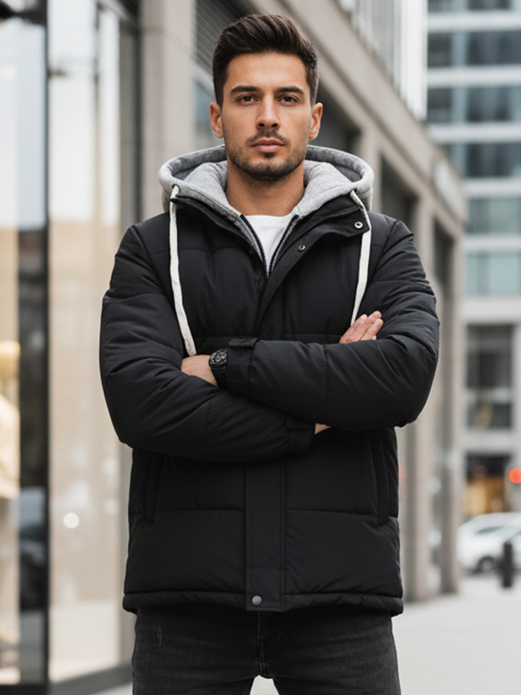 Kurtka męska zimowa z kapturem TX5104 czarna