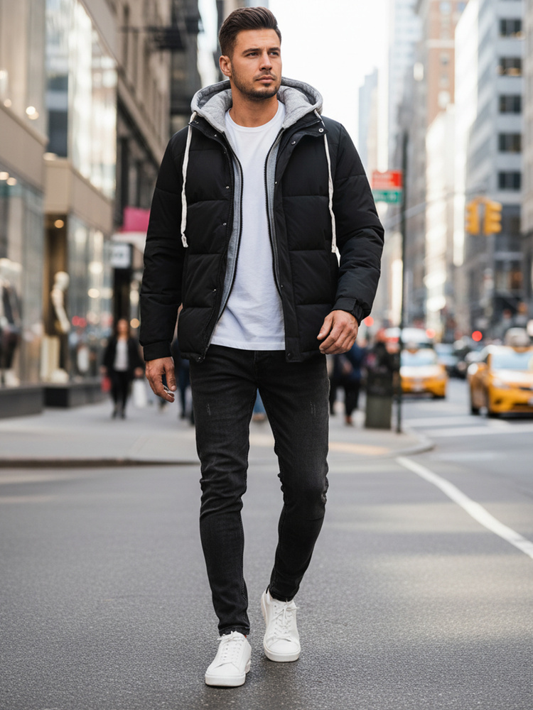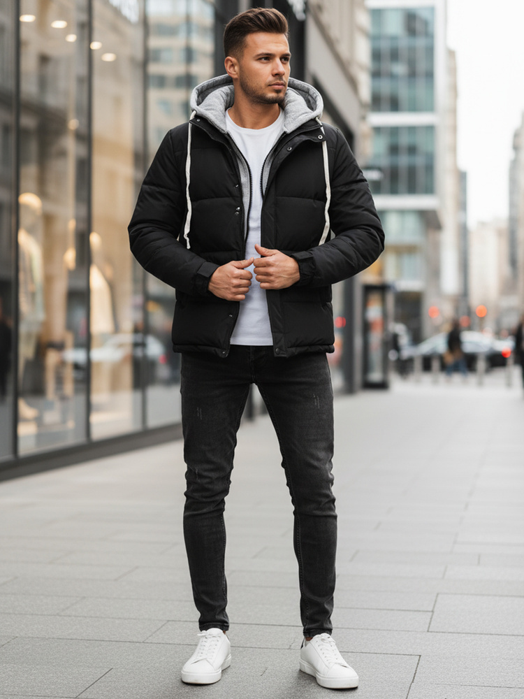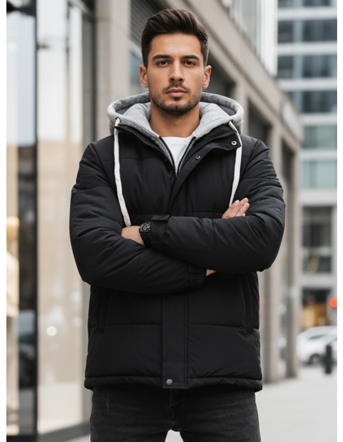 Nowoczesna kurtka zimowa o praktycznym, sportowym fasonie. Model został zaprojektowany z myślą o komforcie i ochronie przed chłodem, posiada kaptur z wszytą podpinka od wewnątrz oraz regulowanym sznurkiem z przodu. Starannie wykonane pikowanie oraz elastyczne elementy przy mankietach zapewniają wygodę noszenia i trwałość przez wiele sezonów.