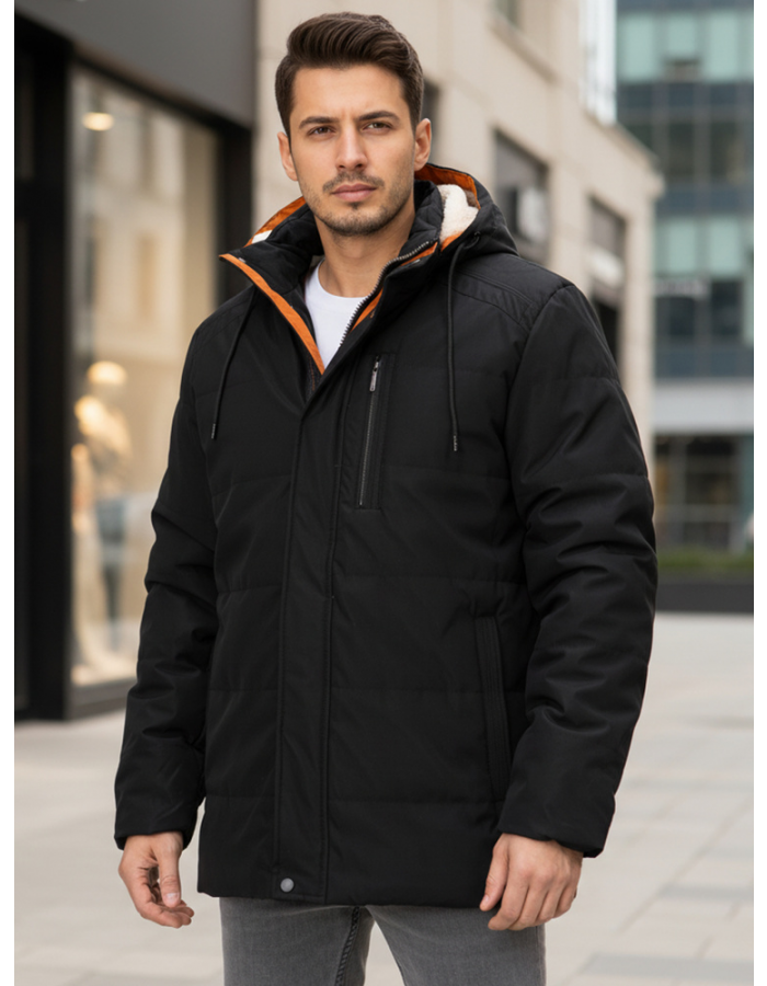 Zimowa kurtka męska wyróżnia się solidną, pikowaną konstrukcją, która pomaga utrzymać stabilną temperaturę ciała w chłodniejszych miesiącach. Wykonana z odpornego poliestru, zapewnia wytrzymałość na codzienne użytkowanie oraz zmienne warunki pogodowe. Wnętrze wykończono gładką podszewką, a regulowany kaptur i dół kurtki zwiększają ochronę przed chłodem. Model łączy klasyczny krój z funkcjonalnymi elementami, tworząc praktyczne okrycie na zimę.