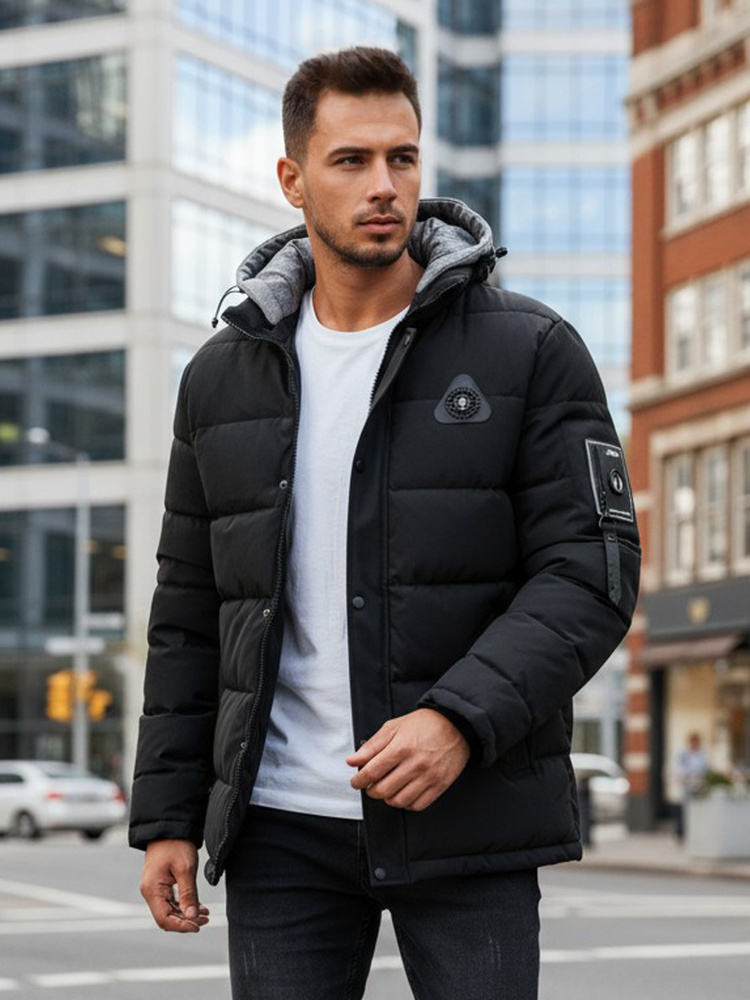 Praktyczna męska kurtka zimowa o klasycznym kroju i nowoczesnym wykończeniu. Pikowana powierzchnia oraz miękkie wypełnienie skutecznie chronią przed zimnem, a odpinany kaptur z regulacją pozwala dopasować kurtkę do aktualnych warunków pogodowych. Model łączy wygodę z miejskim stylem, sprawdzając się w codziennym użytkowaniu.