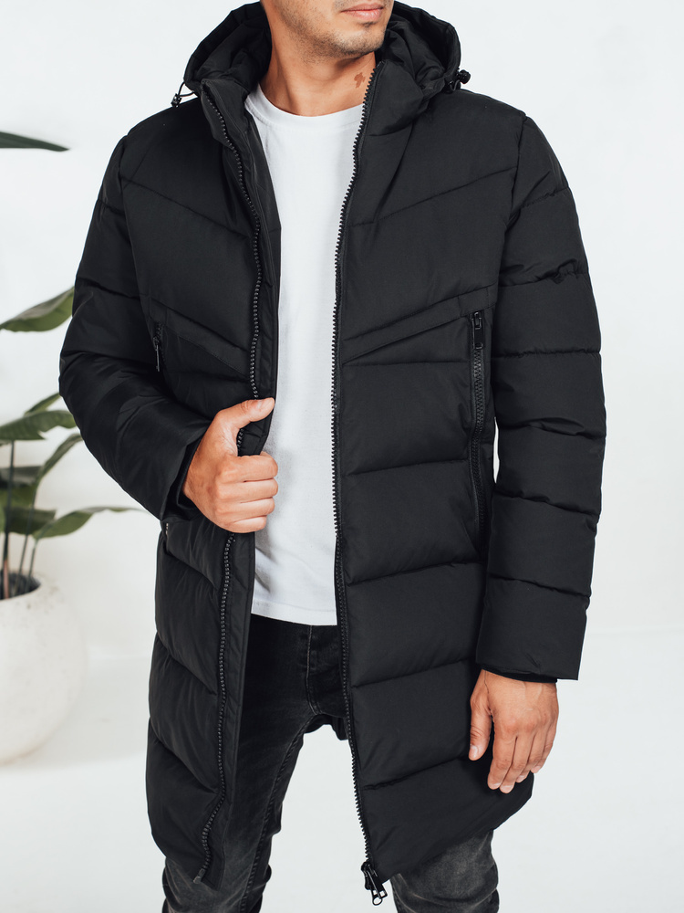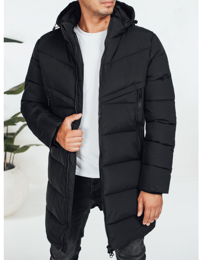 Kurtka męska zimowa z kapturem czarna pikowana TX5070