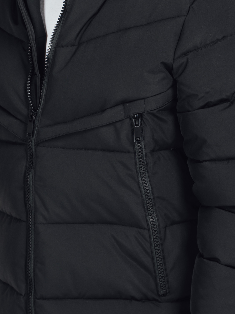 To solidny wybór na sezon jesienno-zimowy. Kurtka została wykonana z materiału odpornego na wiatr, a jej wypełnienie zapewnia komfort cieplny nawet w niższych temperaturach. Minimalistyczny design sprawia, że pasuje do różnych stylów - od codziennych po bardziej sportowe.
