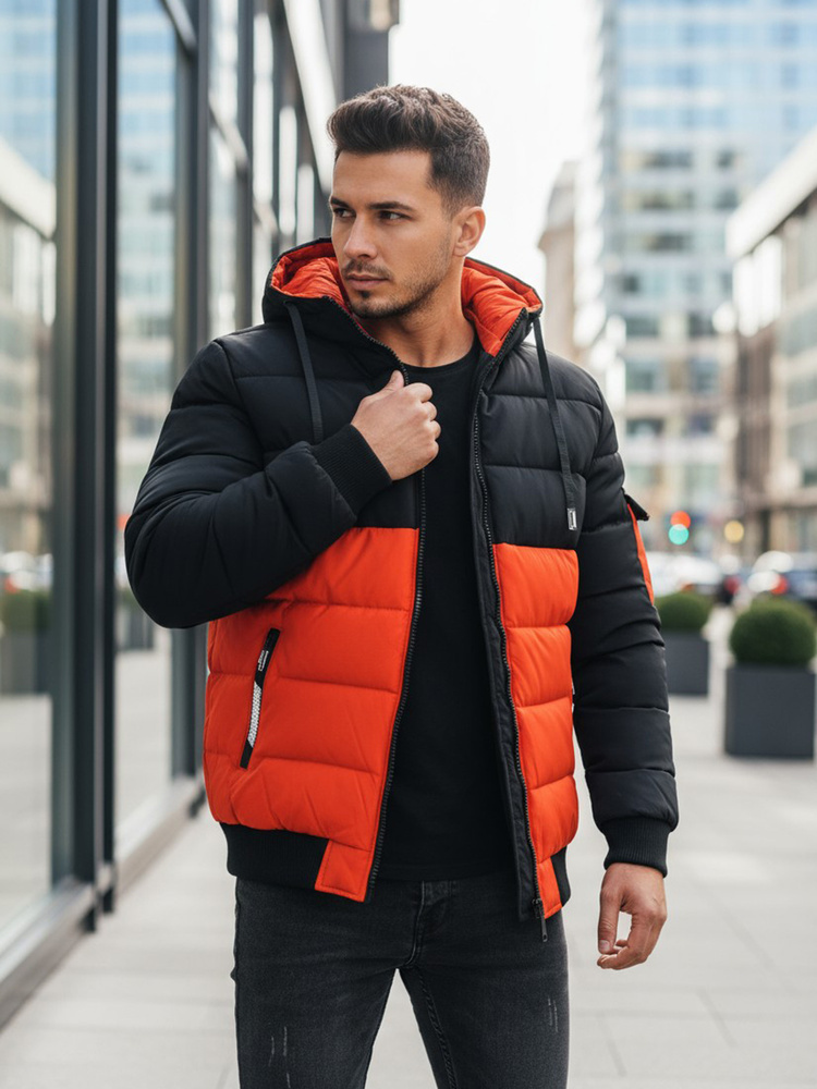 Kurtka męska zimowa pikowana TX5097 pomarańczowo-czarna