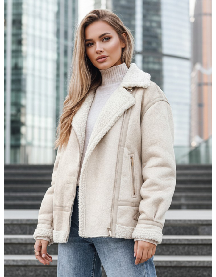 Kurtka ramoneska damska z kożuchem TY5245z beżowa