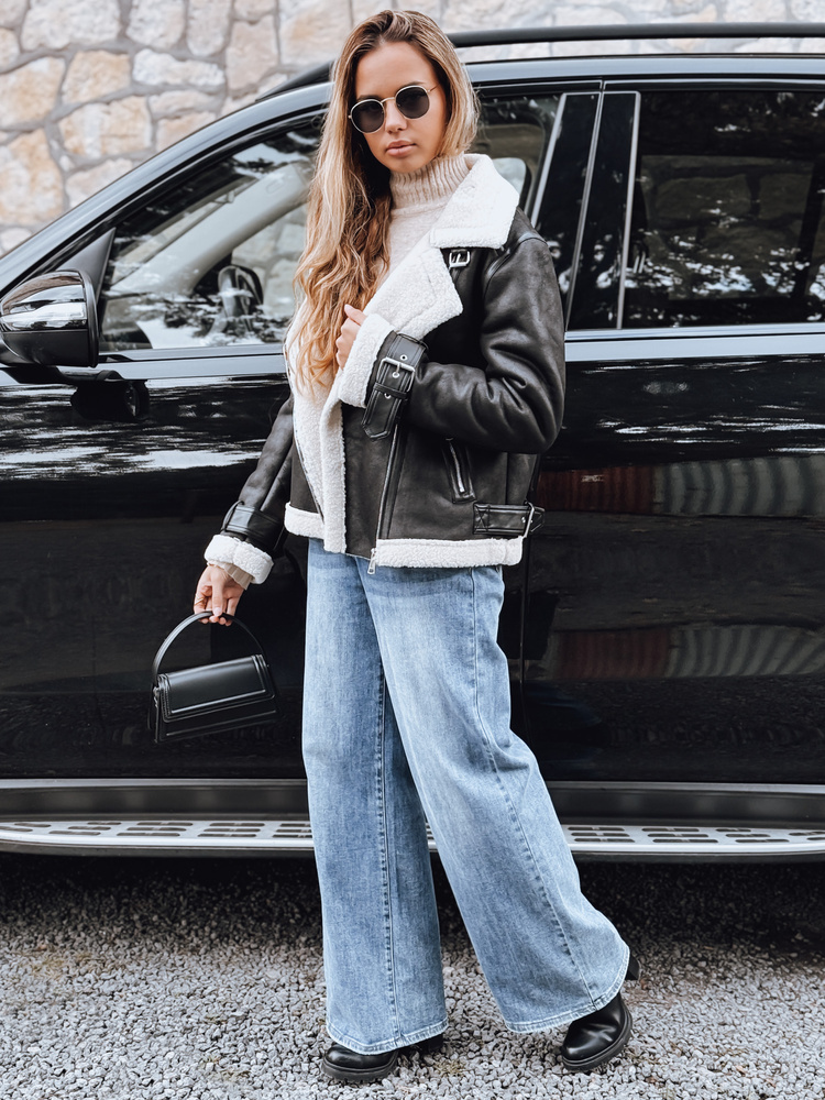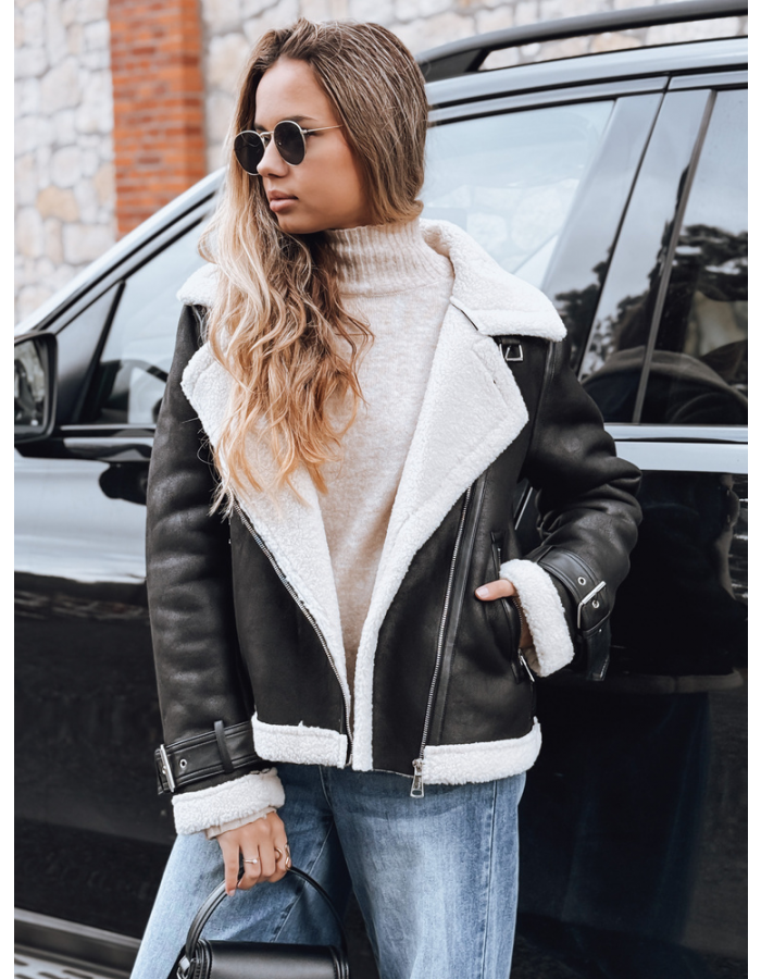 Wykończenie z miękkiego kożucha poprawia izolację, dzięki czemu kurtka sprawdza się w przejściowych porach roku. Detale w postaci metalowych klamer oraz suwaków dodają charakteru i ułatwiają dopasowanie stylizacji do okazji.