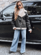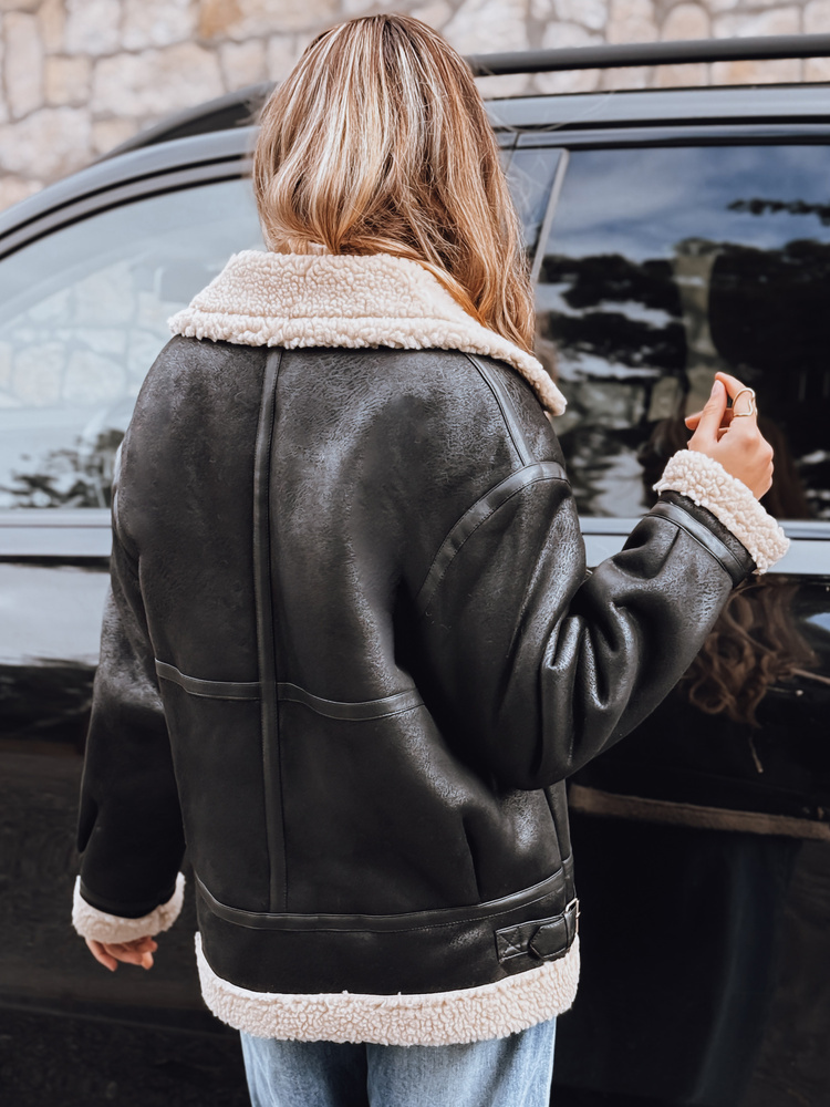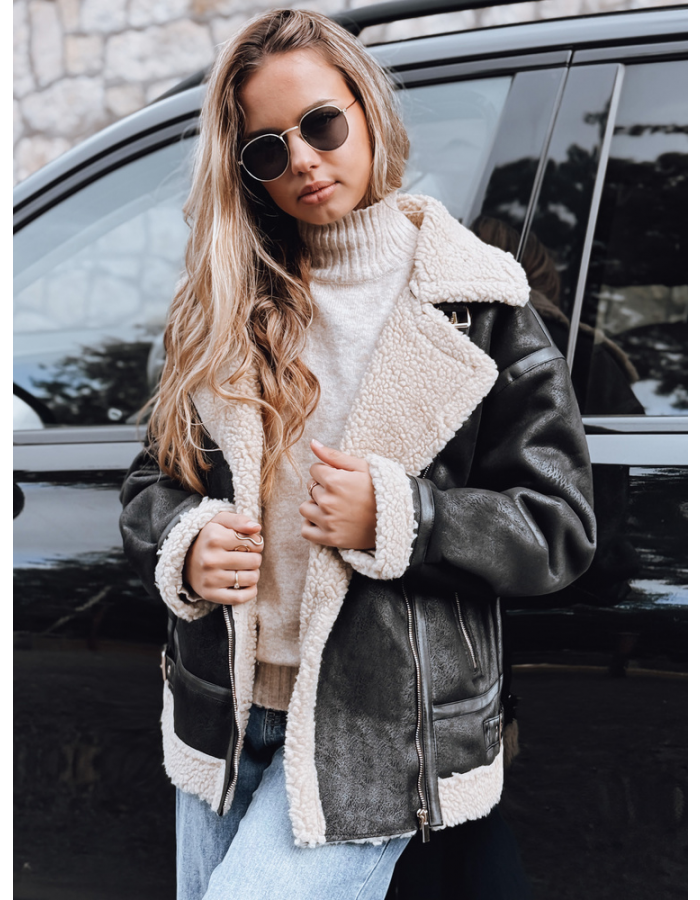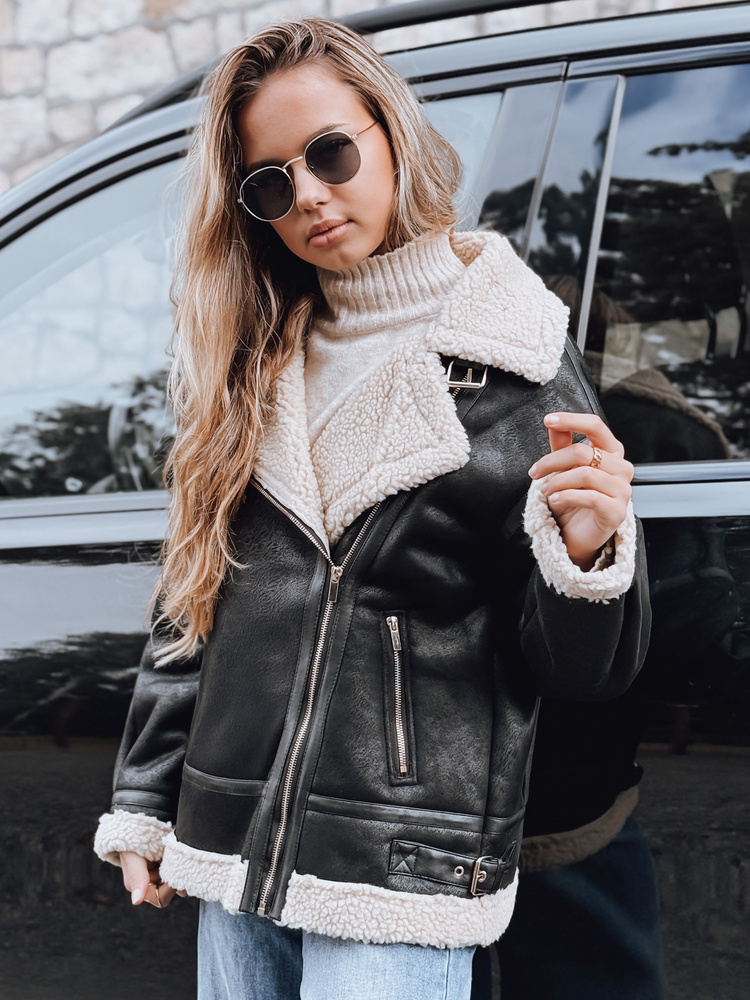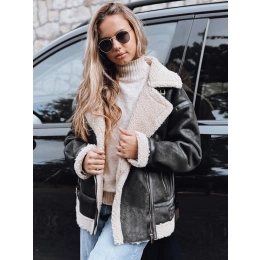 Kurtka ramoneska damska z kożuchem TY5247 czarna