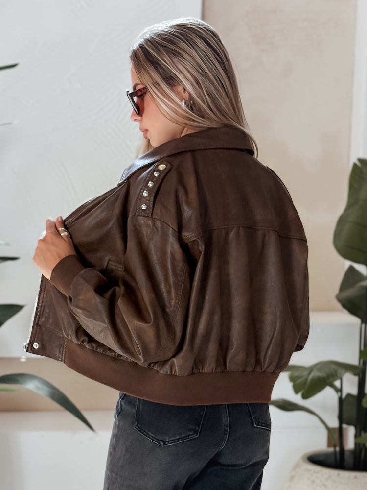 Kurtka skórzana damska bomberka brązowa Dstreet TY5219