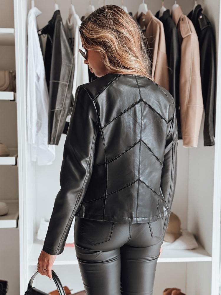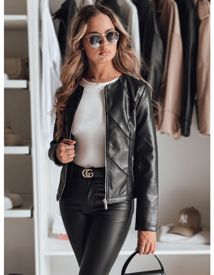 Damska kurtka z ekologicznej skóry o dopasowanym kroju, zapinana na zamek. Geometryczne przeszycia dodają charakteru i nowoczesności, a klasyczna forma pasuje do wielu stylizacji. To stylowy wybór na przejściowe dni – świetna alternatywa dla klasycznych ramonesek.