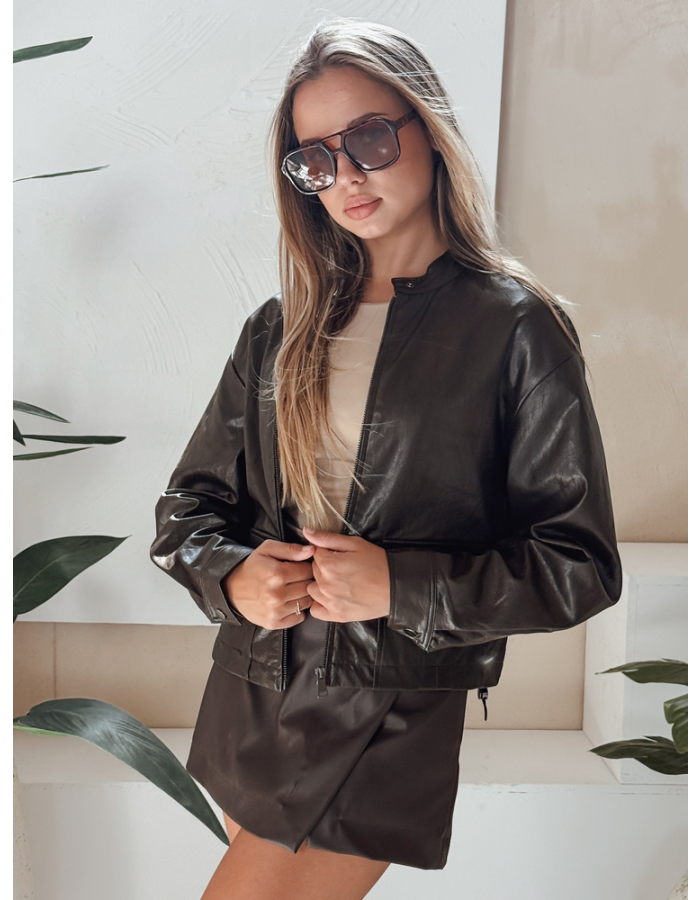 Kurtka damska TY5220 o minimalistycznym kroju wykonana ze skóry ekologicznej to idealny wybór dla miłośniczek nowoczesnego stylu. Prosta linia z subtelnym kołnierzem typu stójka nadaje jej eleganckiego charakteru, a praktyczne kieszenie i zapięcie na suwak zapewniają wygodę noszenia. Model świetnie sprawdzi się w miejskich stylizacjach.