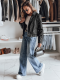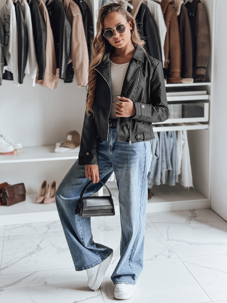 Stylowa kurtka ramoneska damska z ekoskóry łączy wygodę z modnym designem. Krótki krój podkreśla sylwetkę, a detale takie jak suwak i pasek dodają pazura. Pasuje do codziennych outfitów i świetnie sprawdza się wiosną jako lekka alternatywa dla klasycznych kurtek.