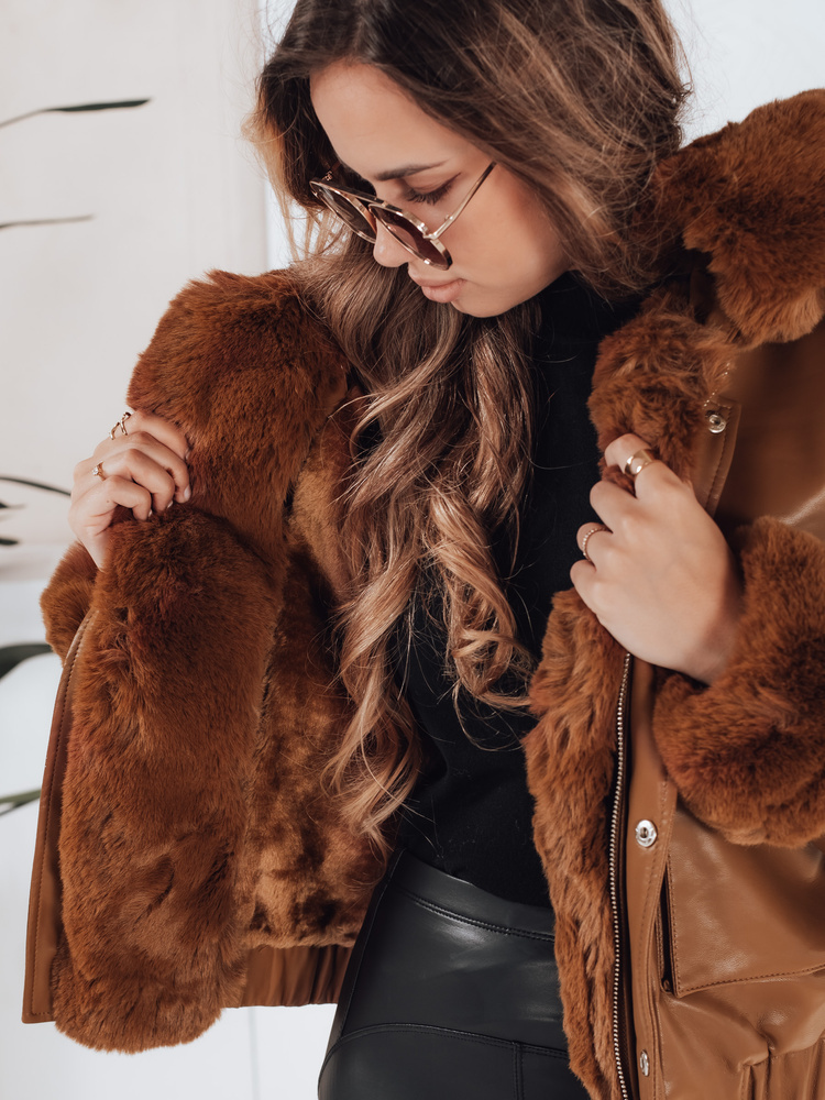 Kurtka skórzana damska z futerkiem brązowa TY5129