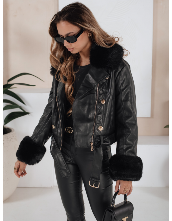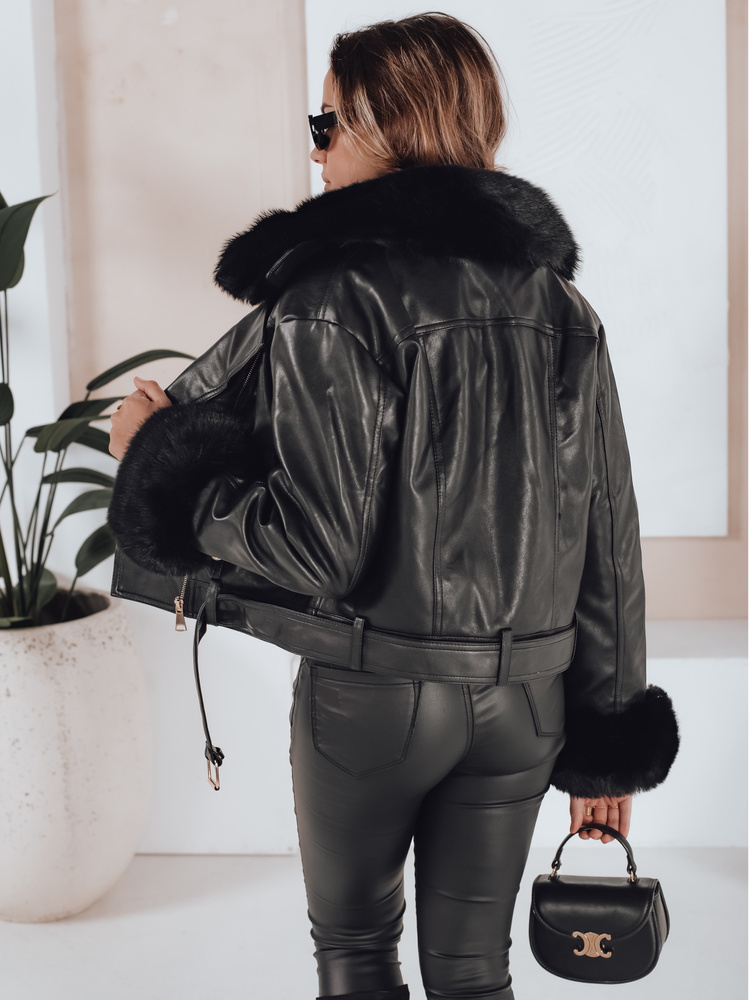 Kurtka skórzana damska zimowa z futerkiem czarna Dstreet TY5209