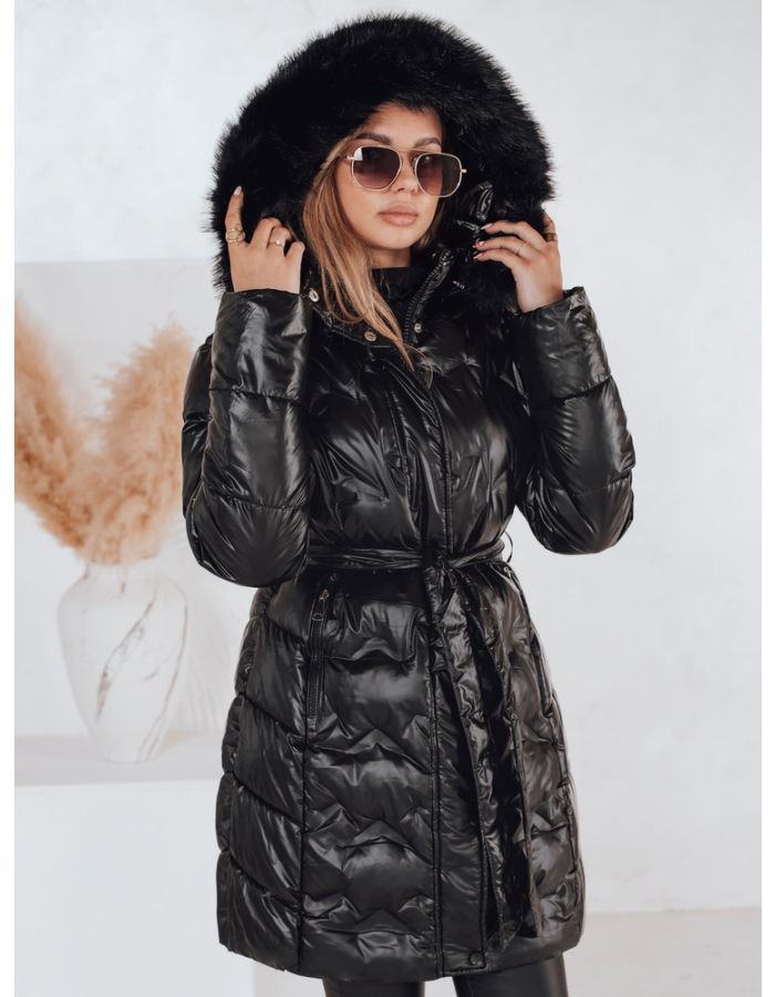 Długa pikowana kurtka zimowa z paskiem podkreślającym talię i kapturem obszytym miękkim futerkiem. Zapewnia skuteczną ochronę przed zimnem i wiatrem, a jednocześnie wygląda stylowo i kobieco. Idealna na chłodniejsze dni, zarówno do miejskich, jak i casualowych stylizacji.