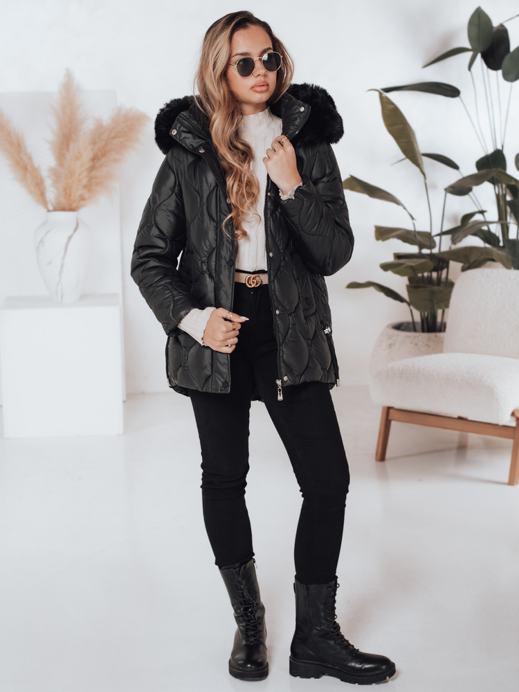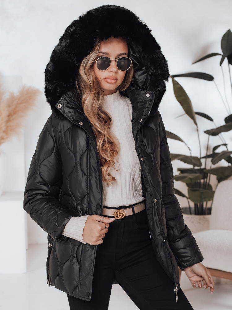 Kurtka zimowa damska LUMORE pikowana z kapturem czarna Dstreet TY5016 M