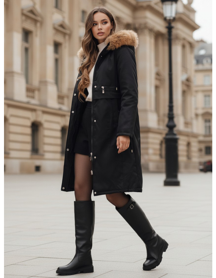 Wnętrze kurtki zostało wykończone miękkim, przyjemnym w dotyku futerkiem, które zapewnia komfort cieplny w zimowe dni. Parka łączy praktyczność z ponadczasowym stylem i sprawdzi się zarówno w stylizacjach casualowych, jak i miejskich. To niezawodny wybór na sezon zimowy.