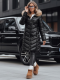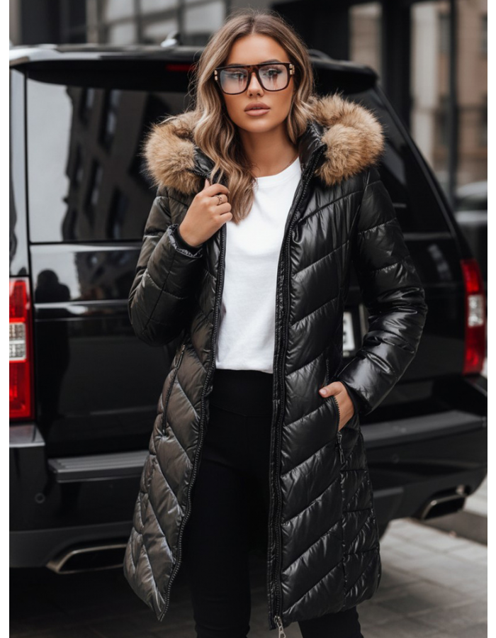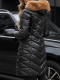 Wyjątkowa pikowana kurtka wykonana z połyskującego materiału. Model posiada nieodpinany kaptur z odpinany futerkiem. Z przodu znajdują się dwie pojemne kieszenie. Całość prezentuje się niezwykle stylowo i modne. Doskonale sprawdzi się zarówno w eleganckich jak i sportowych stylizacjach.