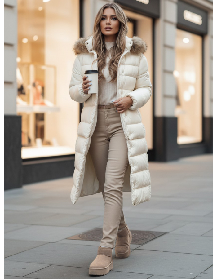 Zanurz się w cieple naszej długiej pikowanej kurtki zimowej, która oferuje wszechstronną regulację długości za pomocą zamka błyskawicznego – wybierz pełną długość dla dodatkowej ochrony lub skróć ją dla casualowego wyglądu. Kurtka posiada zapinanie na zamek błyskawiczny i napy, dwie zapinane kieszenie oraz nieodpinany kaptur z odpinanym futerkiem. Ta kurtka to kwintesencja zimowego komfortu i stylu.