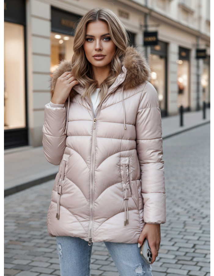 Nasza kurtka to połączenie mody i praktyczności. Dzięki zapinaniu na zamek, jej zakładanie i zdejmowanie jest szybkie i łatwe. Kaptur z futerkiem dodaje elegancji, a jednocześnie pozwala na dostosowanie kurtki do pogody. Dwie kieszenie zewnętrzne są idealne na przechowanie najpotrzebniejszych rzeczy, a ściągacze na dole i rękawach skutecznie chronią przed wiatrem, zapewniając ciepło. To idealna kurtka na codzienne wyjścia, które wymagają stylowego wyglądu i niezawodnej ochrony przed chłodem.