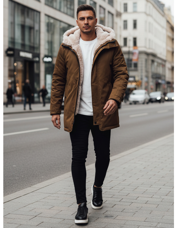 Klasyczna męska parka na zimowe dni, idealna na miejskie i outdoorowe przygody. Wykończona ciepłym, miękkim futerkiem zapewnia maksymalny komfort. Funkcjonalne kieszenie oraz regulowany kaptur sprawiają, że to kurtka zarówno stylowa, jak i praktyczna.