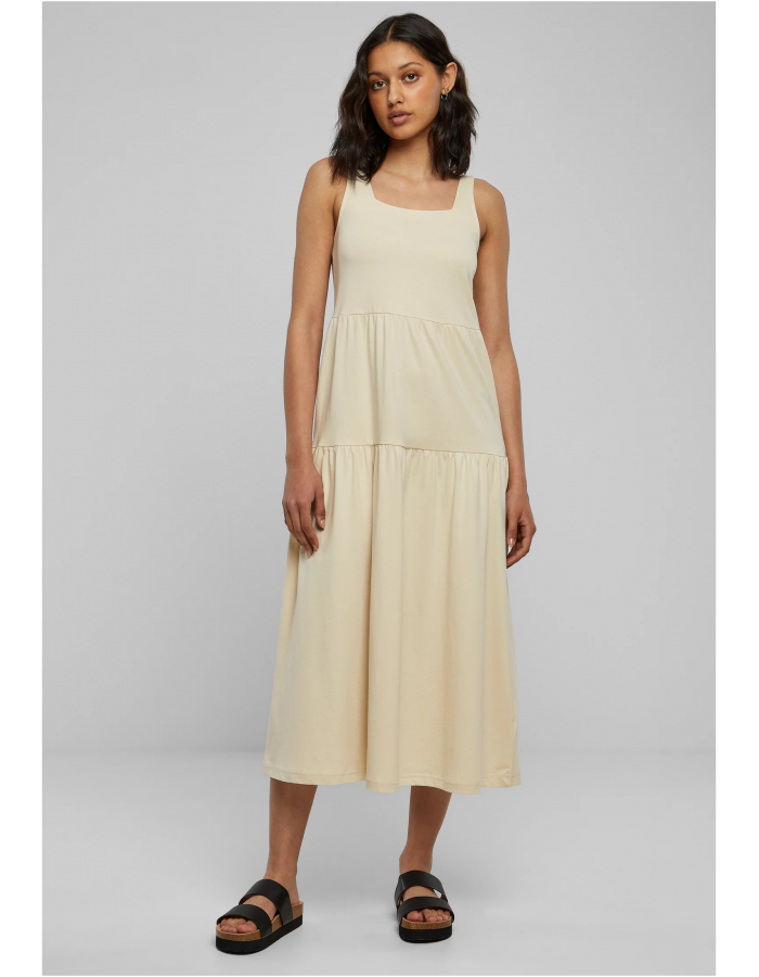 Lehké letní šaty v trendy střihu. Vzadu a vepředu nabízí dámské šaty hluboký, hranatý lodičkový výstřih a pohodlná široká ramínka. Od pasu na dvouřadé volánové vsadky spadají do hravých, velkých skladů. Šaty volného střihu mají 7/8 délku a jsou vyrobeny z bavlny šetrné k pokožce, která je prostě radost nosit.